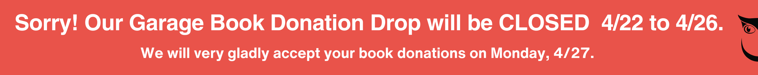 For large donations (more than 5 or 6 boxes) or if the donation bin is full please call the Burlingame Public Library 650-558-7404 or email us.